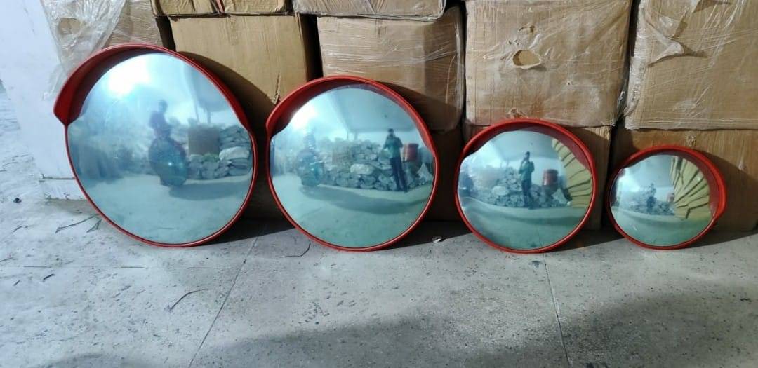 A road convex mirror is a safety device with a curved, outward surface that provides a wide-angle view of areas with limited visibility. Commonly used at road intersections, sharp bends, parking lots, and driveways, it helps prevent accidents by revealing approaching vehicles or pedestrians from blind spots. These mirrors are made from durable materials like polycarbonate or acrylic, with a weatherproof frame, and are available in sizes ranging from 18 to 40 inches. They are often mounted on poles or walls and bordered with reflective colors for visibility. Key benefits: Enhances safety by reducing blind spots Offers up to 160° field of view Weather-resistant and easy to install Used widely in traffic management, industrial areas, and security surveillance, road convex mirrors are essential for improving visibility and preventing collisions in high-risk areas.